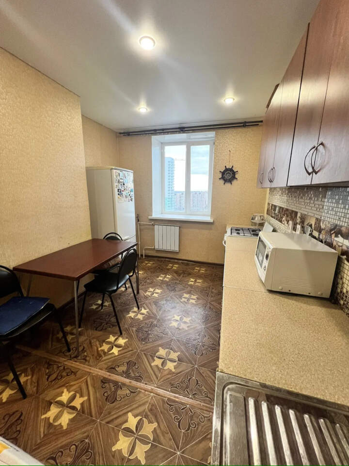 Продам однокомнатную квартиру на последнем этаже кирпичного дома (дом 2014 года постройки). Подойдёт для быстрого заезда без лишних вложений - есть вся необходимая мебель и кухонный гарнитур. Санузел в кафеле. Балкон с панорамным остеклением, вид на улицу.