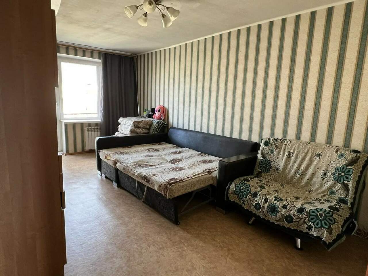 Вся мебель остаётся новым собственникам, санузел полностью в кафеле.