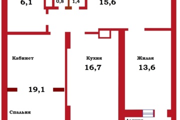 Жилая комната с двумя помещениями (19,1) :